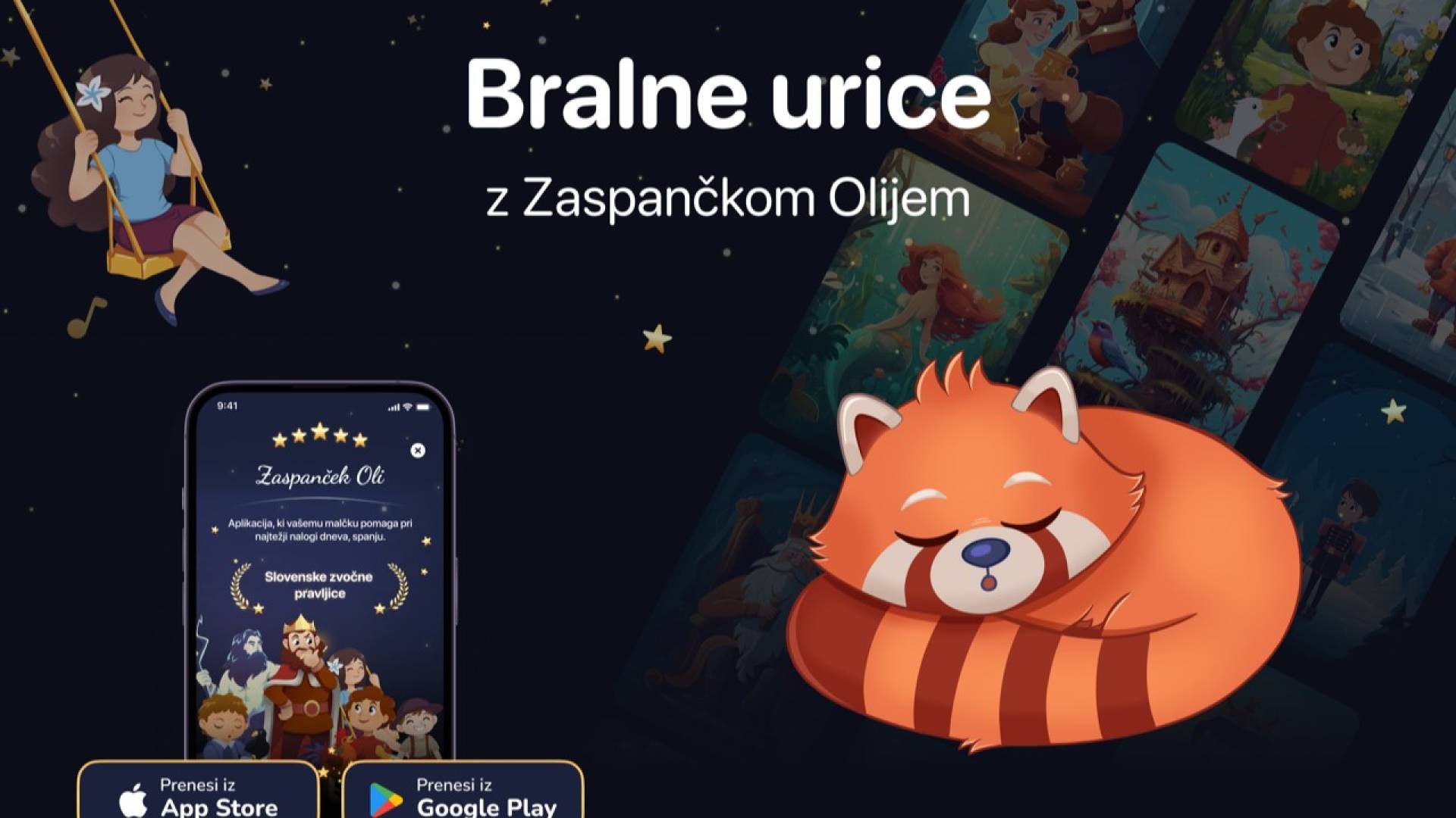 Zaspanček Oli je majhna rdeča panda, ki z aplikacijo za pametne telefone z zvočnimi pravljicami pomaga pri najtežji nalogi dneva: spanju. 💤