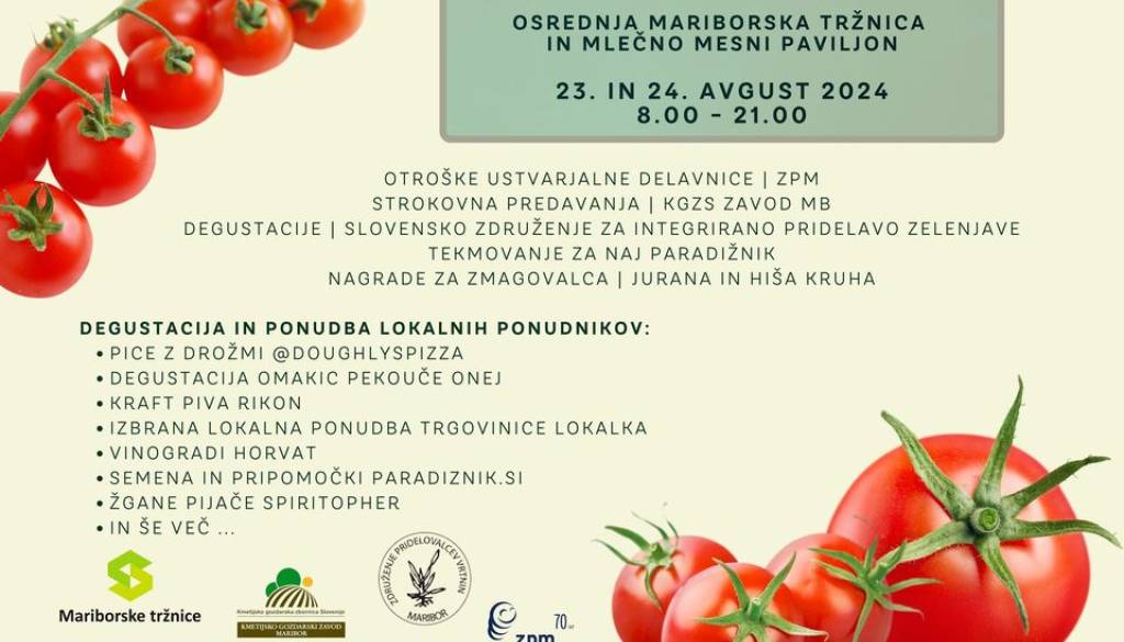 8.00 - 12.00 Degustacija in ocenjevanje paradižnikov z namenom izbire najboljšega in najtežjega paradižnika v izvedbi Slovenskega združenja za integrirano pridelavo zelenjave.