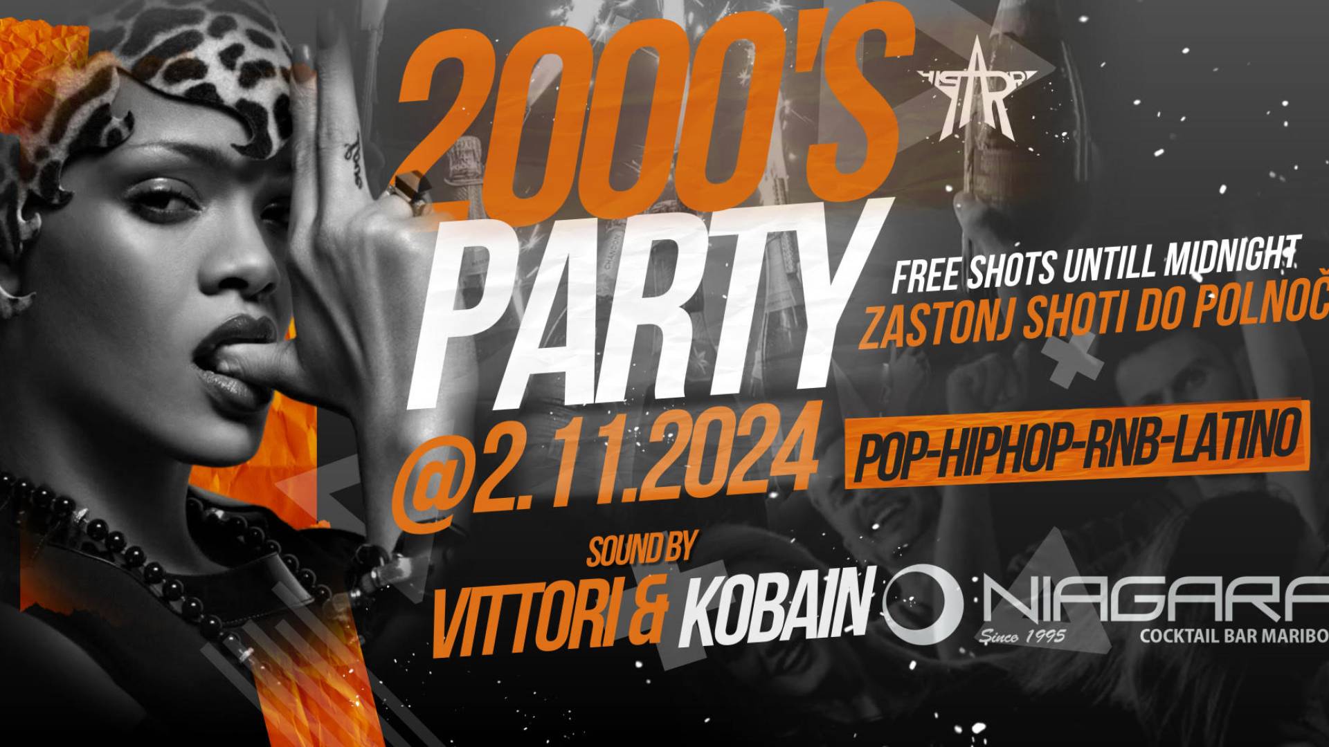 Ulica talcev 24, Maribor2. novembra vas v Niagari čaka nepozaben dogodek, ki vas bo popeljal nazaj v zlata 2000-a! Za vse, ki še vedno z veseljem plešemo na hite tistega časa in obožujemo hiphop, pop, R&B ter latino ritme, pripravljamo pravo glasbeno potovanje skozi čas.🍾