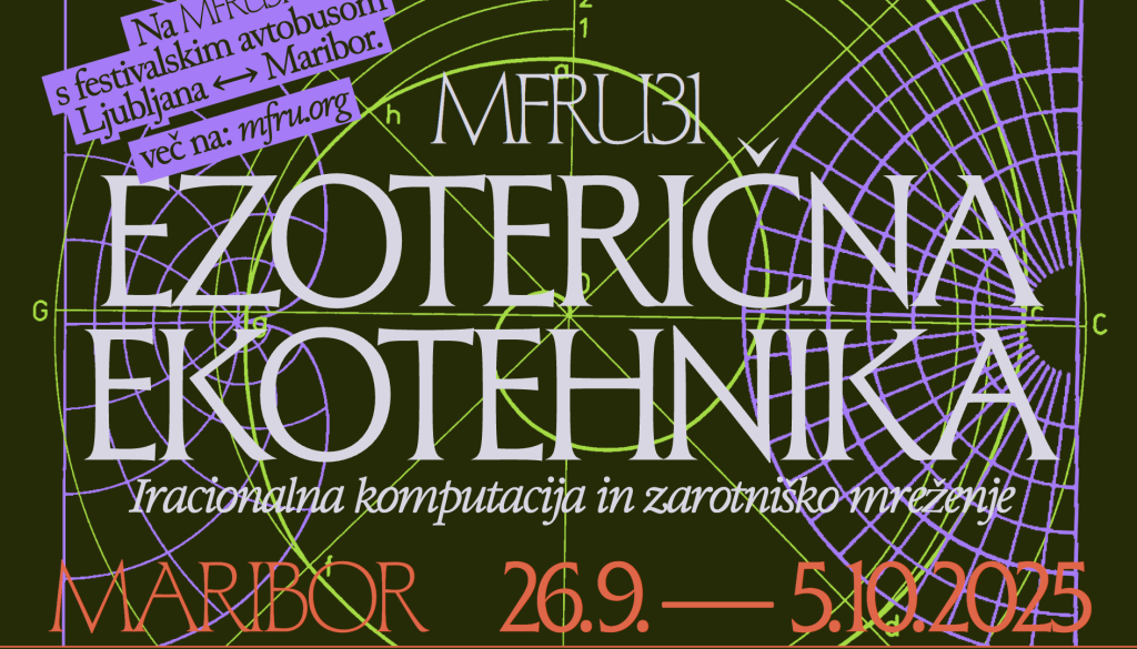 MFRU31 se pričenja z raziskavo radikalnih alternativ prevladujočim infrastrukturam v umetnosti, algoritmih in človeški izkušnji. 31. edicija mednarodnega festivala računalniške umetnosti z naslovom Ezoterična ekotehnika: Iracionalna komputacija in zarotniško mreženje, v ospredje postavlja podtalne in skrivne povezave med medijskimi tehnologijami, uporabniki ter kroženjem znanja in informacij.