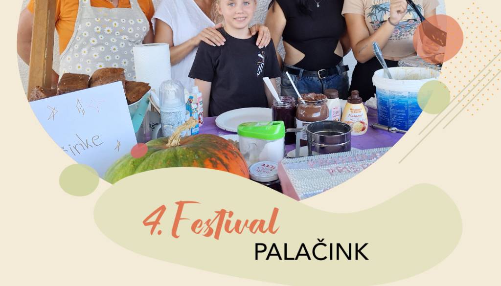 4. FESTIVAL PALAČINK Občina Lenart Ornik Darja | 28. avgust 2025 14:36 v Termin Petek, 5. september 2025 16:00 - Petek, 5. september 2025 21:00 Lokacija ZAVRH, PLOŠČAD PRI VILI IN KAVARNI MAISTROVA KLET Slastne palačinke vseh vrst "za prste obliznit", aktivnosti za otroke.