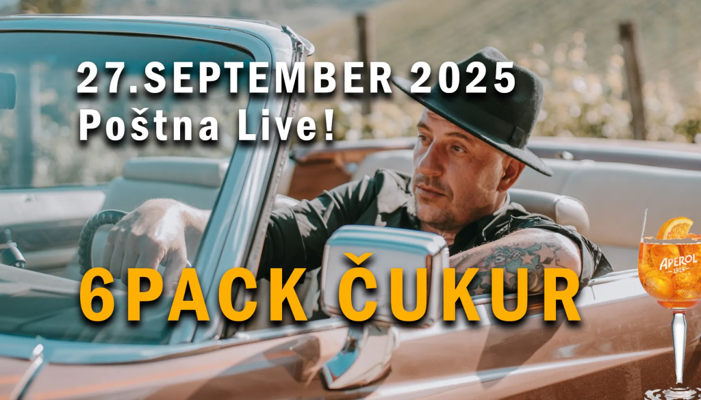Poštna ulica6PACK ČUKURSlovenski reper 6pack Čukur se vrača na odre z novo energijo in pozitivnim sporočilom! Njegova glasba je danes preplet zabave, sproščenosti in humorja – brez odvečnega uporništva.