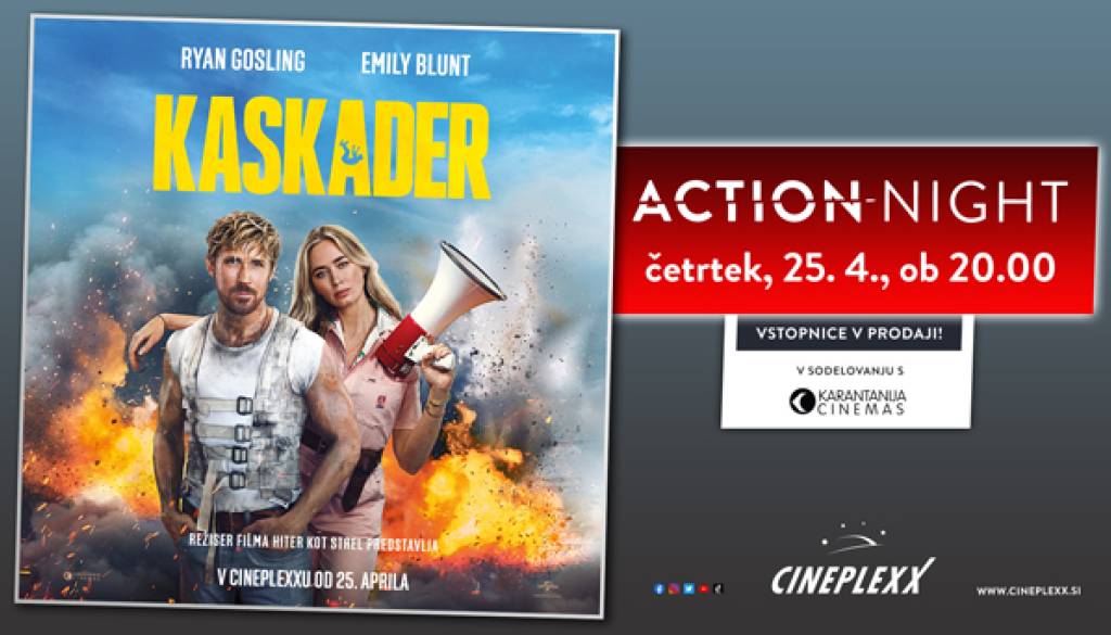 Cineplexx MariborPridruži se nam na Action Nightu s filmom KASKADER, ki bo v četrtek, 25. aprila 2024 ob 20:00 v Cineplexxu Maribor!