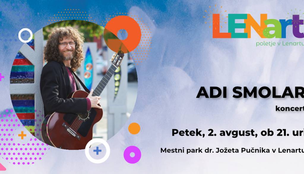 MESTNI PARK DR. JOŽETA PUČNIKA V LENARTUAdi Smolar, ki je v svoji glasbeni karieri prejel številne nagrade tako s strani poslušalcev kot strokovne javnosti, za vas pripravlja nepozaben večer. Na svoj kritičen, razmišljujoč, vendar zelo hudomušen način vam bo predstavil svoje skoraj ponarodele pesmi. Adi velja za enega izmed najizvirnejših, najplodnejših in najpopularnejših kantavtorjev pri nas. Svoje poslušalce je razveselil s kar 14 samostojnimi albumi. V eni izmed svojih pesmi pravi: "Se počasi daleč pride, se prav počasi spletejo vezi, dokler mi sonce ne zaide, iskal poti bom do ljudi!" Tako nam preprosto opiše pot, ki jo je prehodil od leta 1981, ko je imel svoj prvi samostojni koncert, pa vse do danes. Bodite del njegove poti tudi vi, zato vljudno vabljeni…