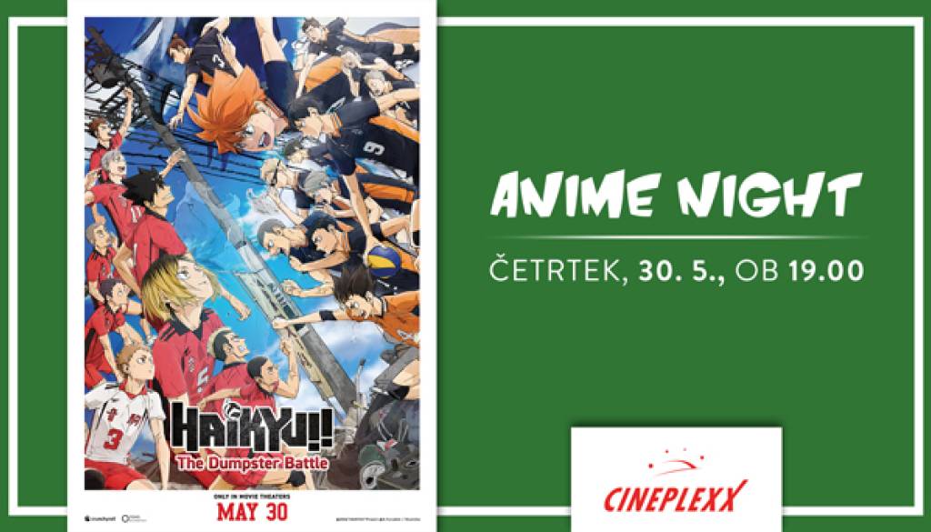 Cineplexx MariborPridruži se nam na ANIME NIGHTU, s filmom HAIKYUU!! The Dumpster Battle, v četrtek, 30. maja 2024 ob 19.00, v Cineplexxu Maribor!