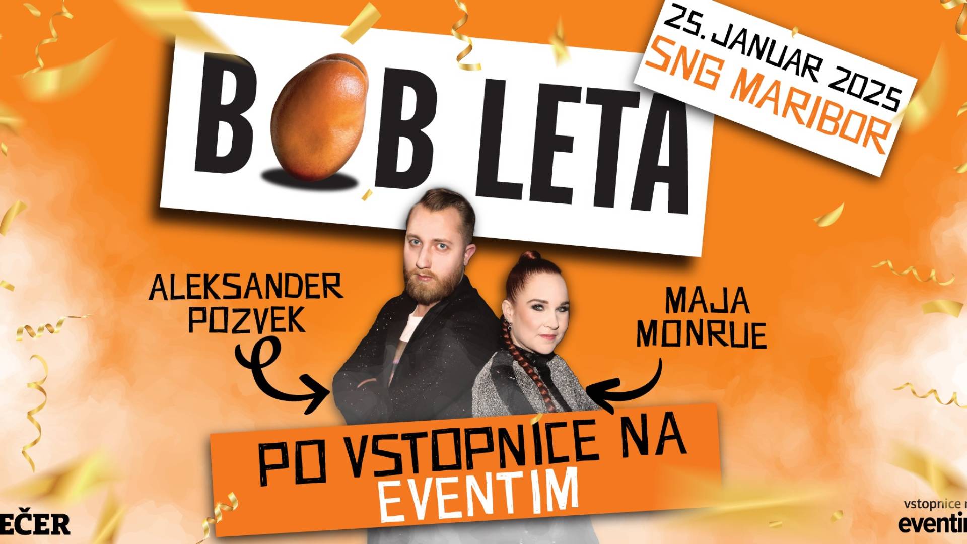 Skozi VEČER satire, smeha in močnih sporočil nas bosta vodila Aleksander POZVEK in Maja MONRUE.