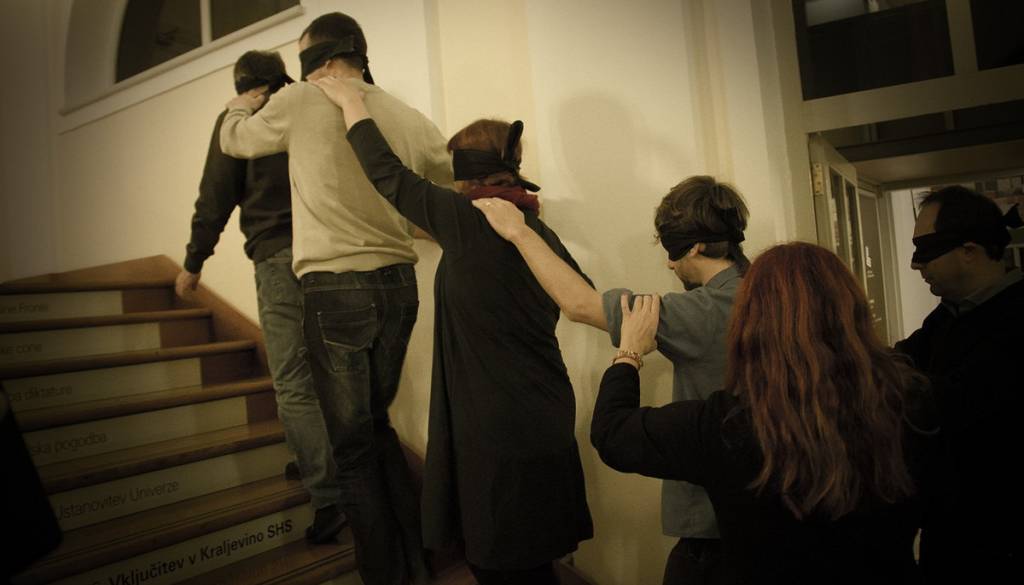 1. Predstava traja od 60 do 70 minut, prvih 45 minut nosite prevezo čez oči.