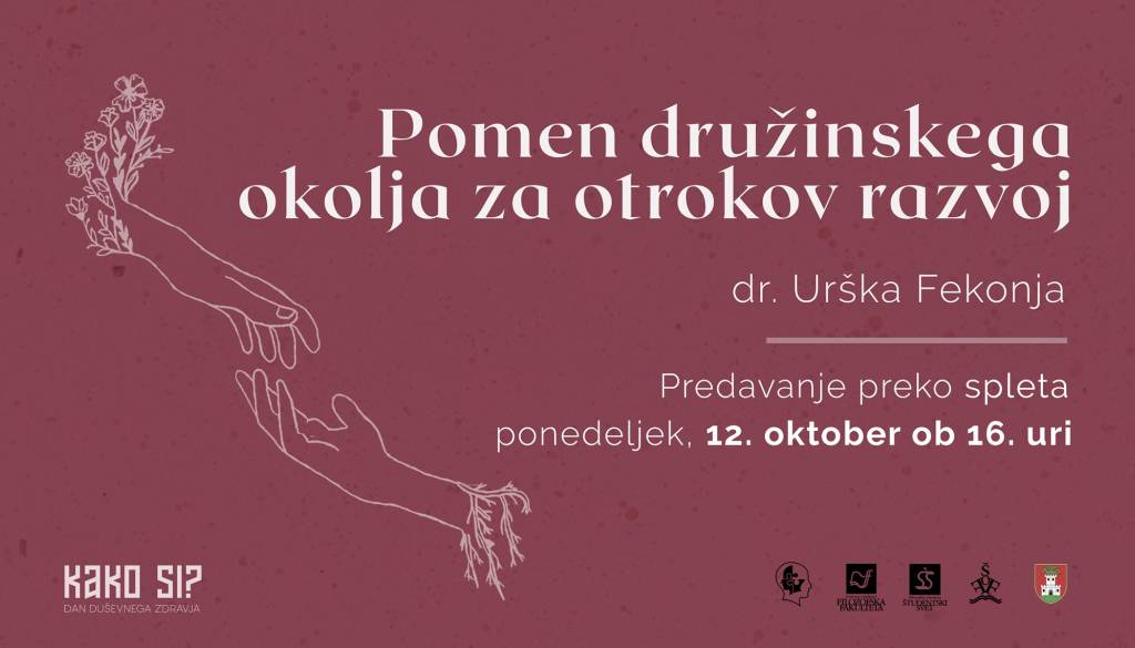 Dr. Urška Fekonja je izredna profesorica za razvojno psihologijo na Filozofski fakulteti Univerze v Ljubljani. Raziskovalno se ukvarja predvsem s preučevanjem otrokovega govora in igre ter učinka vrtca in družinskega okolja na otrokov razvoj. Pred kratkim je v soavtorstvu objavila dve knjigi Zgodbe otrok: razvoj in spodbujanje pripovedovanja in Zgodnji govorni razvoj: varovalni in dejavniki tveganja v družinskem okolju. Na predavanju bo spregovorila o vplivu družine na otrokov razvoj in pojasnila rizične in varovalne dejavnike.