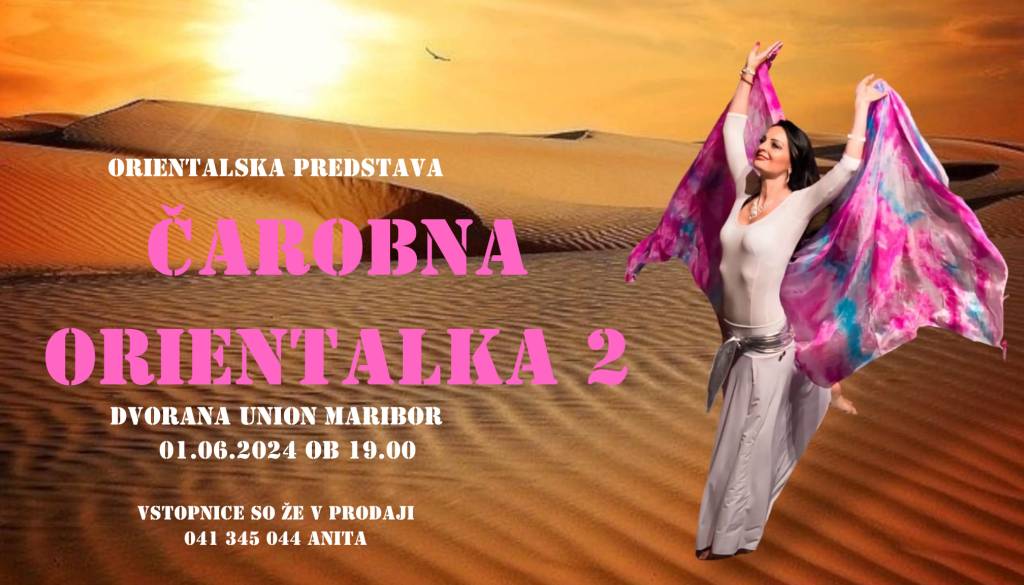 Srčno vas vabim na ogled 01.06.2024 ob 19.00 uri v dvorano Union v Mariboru. Vsi se zelo veselimo in verjamem, da boste uživali ob lepi orientalski glasbi, prelepih, čutnih plesalkah in močni moški energiji plesalcev. Se vidimo. 🥰