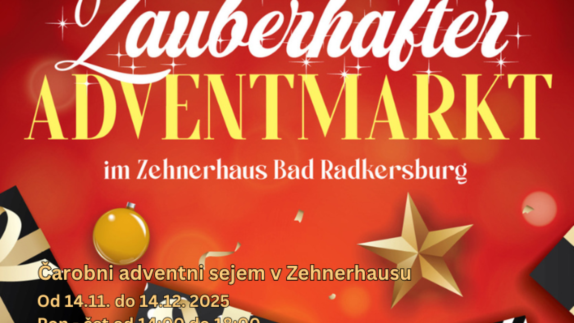 ✨ Čarobni božični sejem 🎄 🗓️ 14. november – 14. december 2025 🕓 Ponedeljek–četrtek: 14.00–18.00 🕙 Petek–nedelja: 10.00–18.00 📍 Zehnerhaus Bad Radkersburg 🏛️ ...