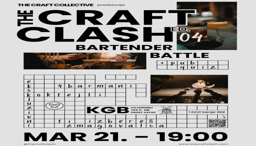 Rezervacija miz na: https://klub-kgb.si/en/events/2026/mar/the-craft-clash Za vse, ki uživate v dobrih koktejlih in prijetni družbi, vabljeni!