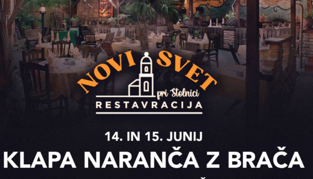 Slomškov trg 5, MariborPrečudovita mestna restavracija Novi svet pri Stolnici, ki je s svojo 30 letno tradicijo znana po morskih specialitetah in vrhunskih vrstah vin, vas 14. 6. in 15. 6. vabi, da svoje gurmanske užitke obogatite ob živi dalmatinski glasbi, na najlepši terasi v mestu, ki jo bo izvajala KLAPA NARANČA Z BRAČA.