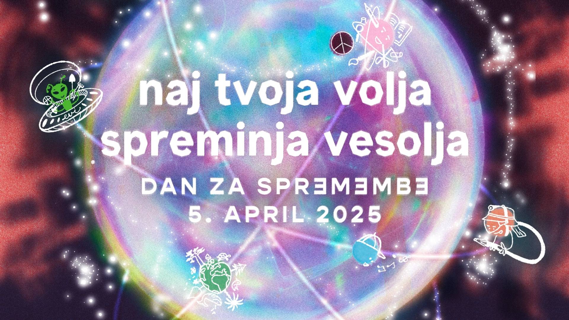 Kulturni inkubator, Koroška ulica 18, MariborPod okriljem Slovenske filantropije se MKC Maribor tudi letos vključuje v vseslovensko akcijo Dan za spremembe. Tokratni slogan nas nagovarja, da NAJ TVOJA VOLJA SPREMINJA VESOLJA, s čimer želimo poudariti kako vsako majhno dobro delo lahko malenkostno spremeni vesolje.