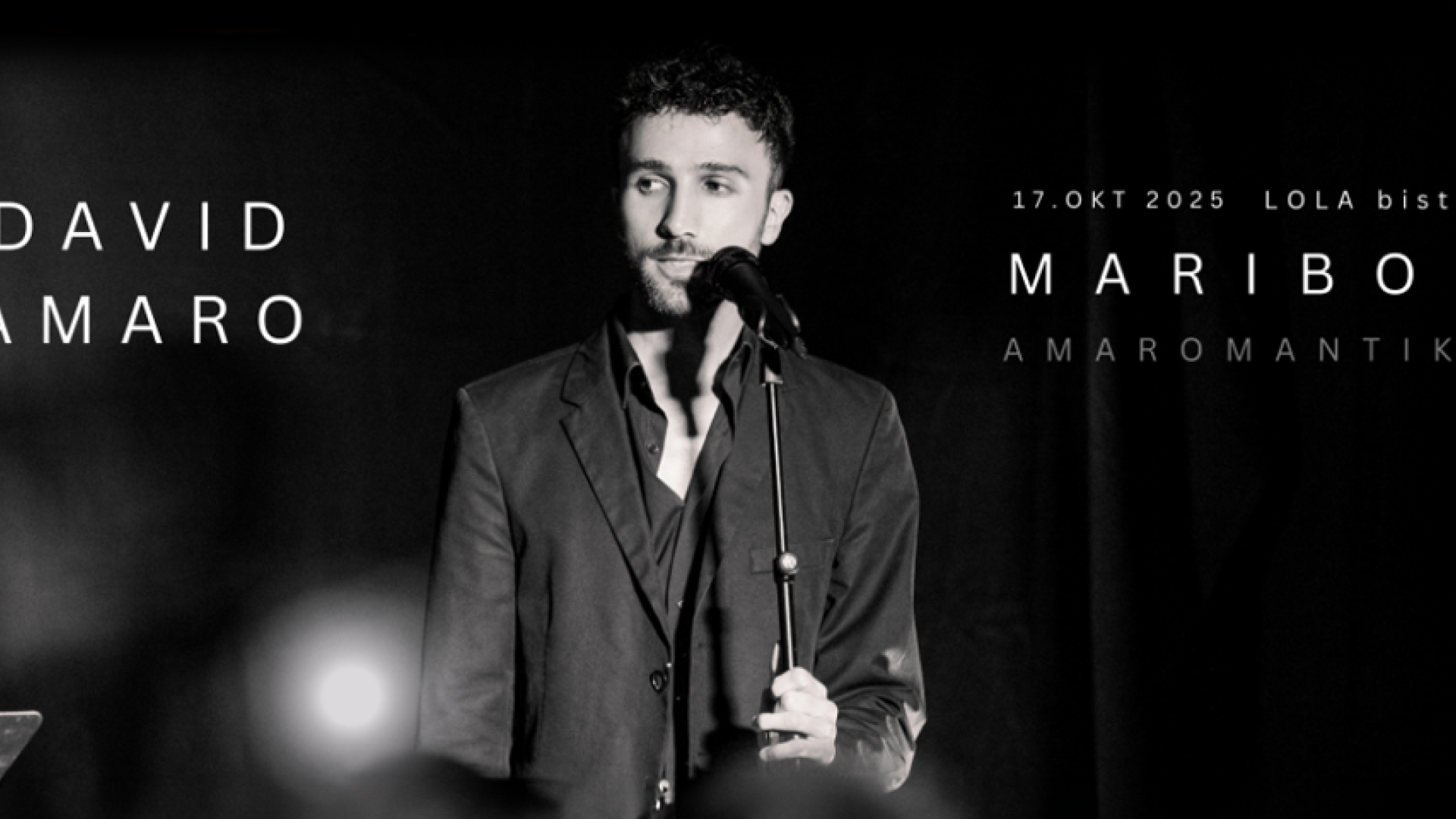 LOLA cafe & bistroDavid Amaro je Slovenijo navdušil kot finalist oddaje Znan obraz ima svoj glas ter kot pevec ogromne širine, ki je s svojo vokalno interpretacijo navdušil tudi v oddaji Superstar na Hrvaškem, kjer sta Severina in Tonči Huljić ob njegovem glasu ter izvedbi pesmi Lejla ostala brez besed.