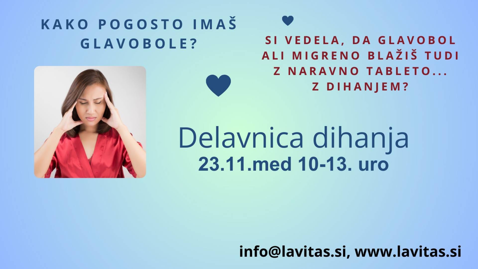 🖋OBVEZNE SO PRIJAVE NA: https://lavitas.si/delavnica-dihanja-ozavestimo-naravno.../ (obrazec zraven besedila) ali na [email protected].