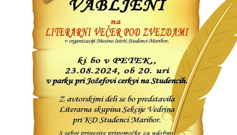 📅 Vabljeni, da se nam v petek, 23. avgusta 2024, ob 18. uri pridružite v vinski kleti Vinag v Mariboru na pesniškem posvetu.