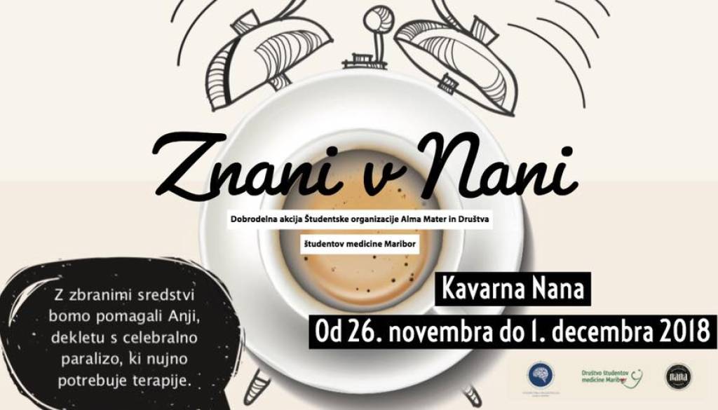 Vljudno vabljeni v Nano na dobrodelni dogodek Znani v Nani, ki ga prireja Nana kavarna & bistro, v sodelovanju s študenti Alma Mater in s študenti medicine Maribor.