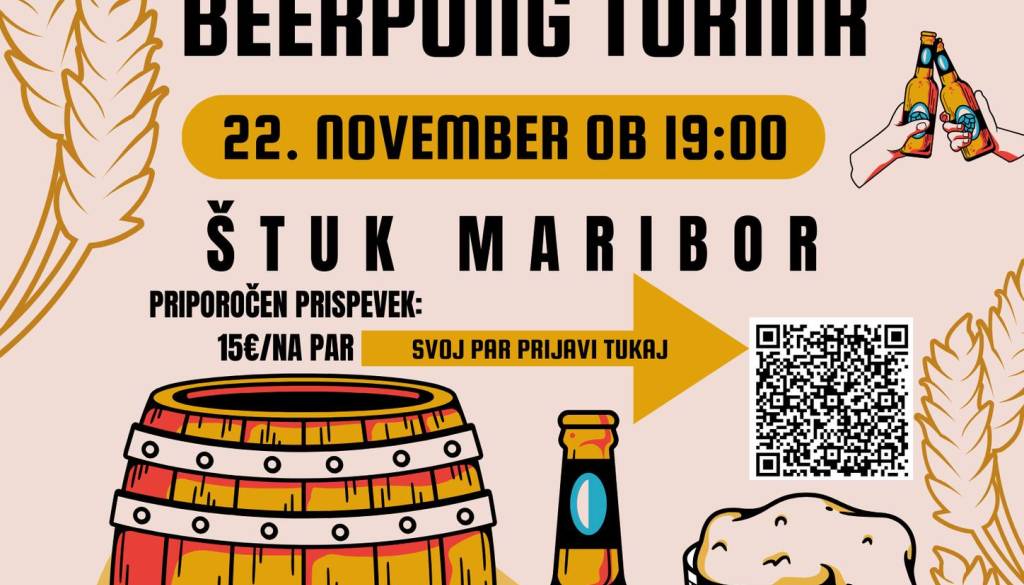 Letos ponovno pripravljamo dobrodelni Beerpong turnir, ki bo potekal 22. 11. na Štuku🍺