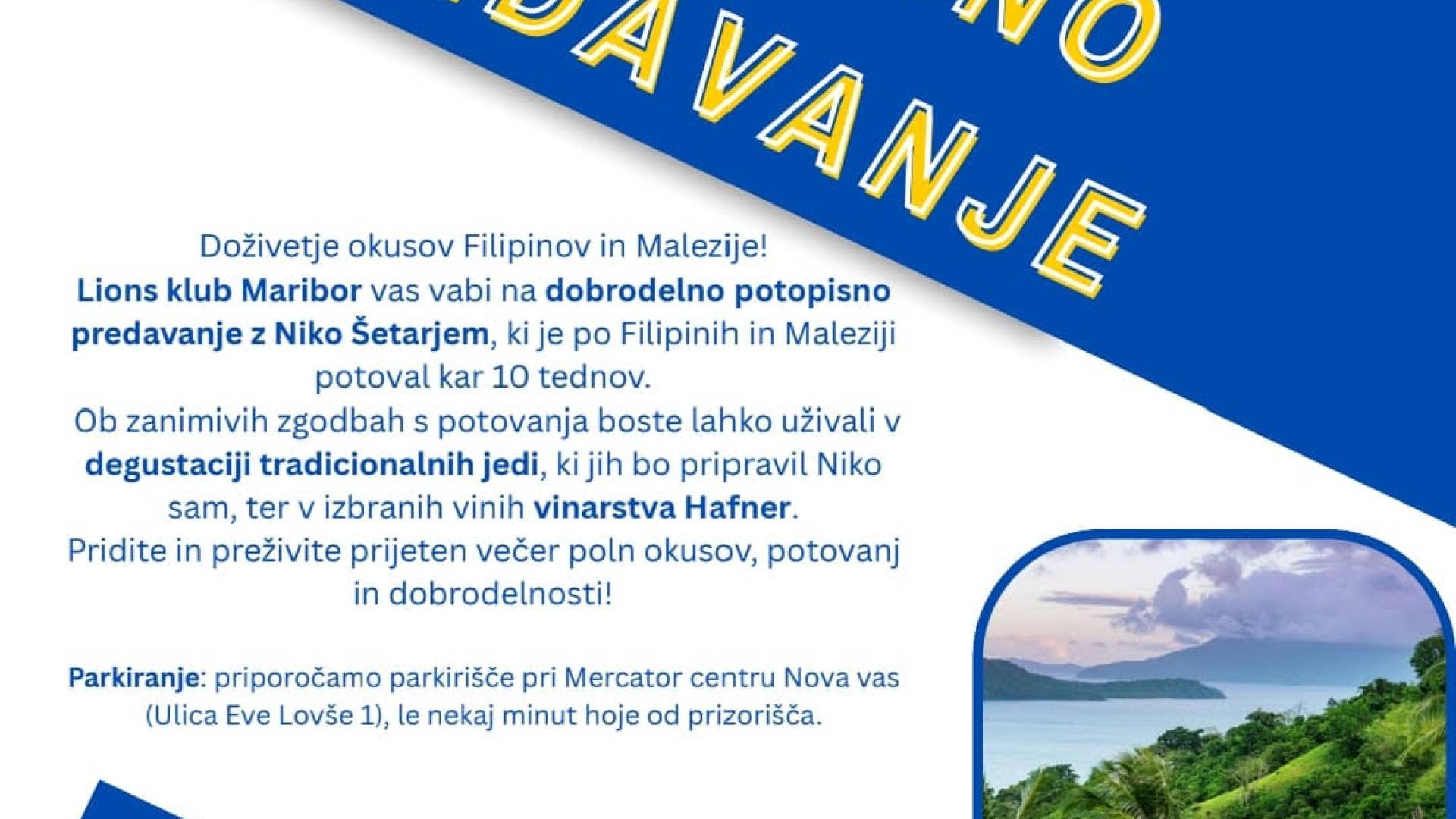 Prostori Mestne četrti Nova vas - Radvanjska cesta 65Dobrodelno društvo Lions klub Maribor vas vabi na edinstveno doživetje okusov Filipinov in Malezije!