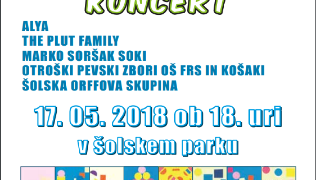 OŠ Franca Rozmana StanetaV četrtek, 17. 5. 2018 ob 18. uri bo na OŠ Franca Rozmana-Staneta potekal DOBROMAJSKI KONCERT, v šolskem parku. V primeru dežja, bo dogodek v šolski telovadnici.