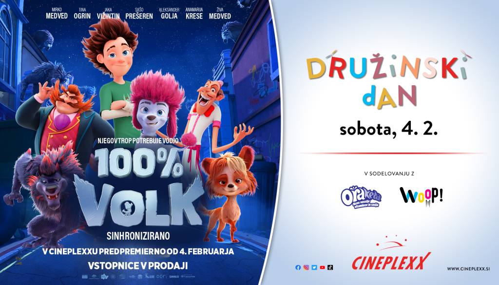 DRUŽINSKI DAN 100% VOLK - bo v soboto, 4. februarja V Cineplexxu Mariboru.