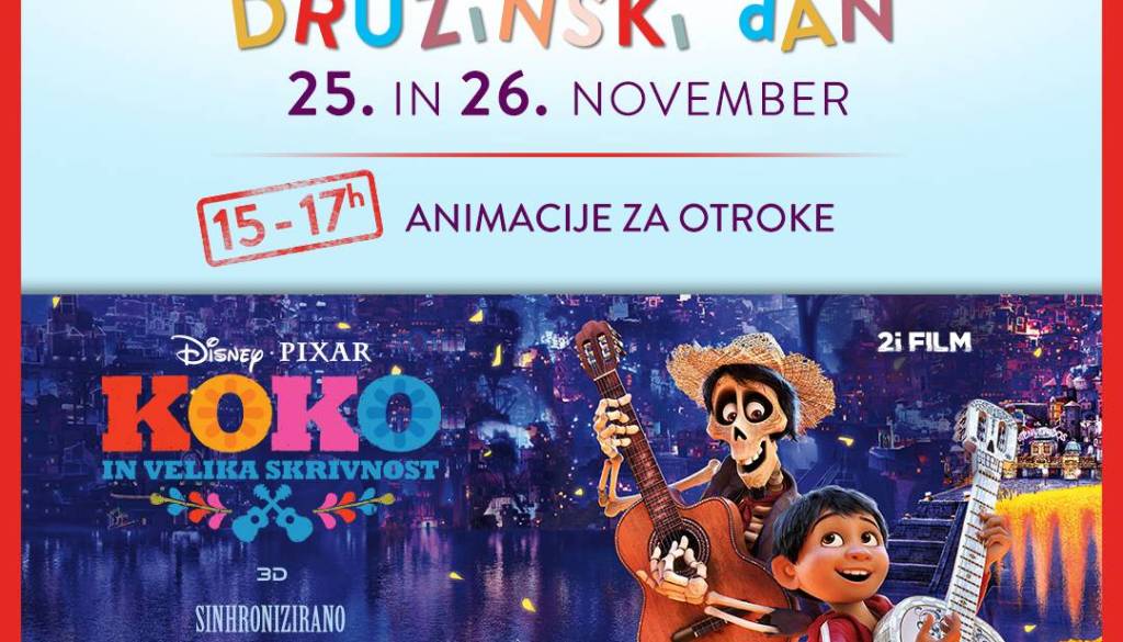 Cineplexx MariborV Cineplexxu Maribor lahko ujamete novo Disneyjevo uspešnico KOKO IN VELIKA SKRIVNOST, ki se vrti skupaj s kratkim predfilmom LEDENO KRALJESTVO: OLAFOVA PRIGODA. Vabljeni na DRUŽINSKI DAN, ki bo v soboto, 25. in nedeljo, 26. novembra. Od 15.00 do 17.00 najmlajše čaka poslikava obraza s filmskimi motivi, baloni in otroški kotiček s pobarvankami.