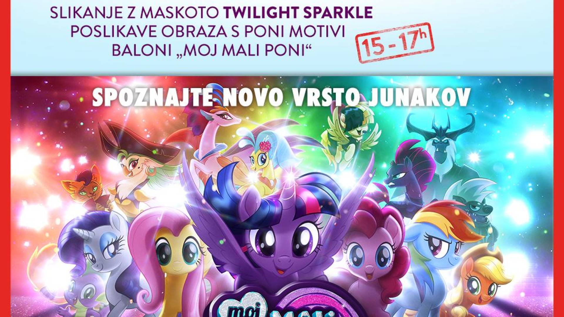 Cineplexx MariborDružinski dan v Cineplexxu Maribor bo popestrila prav posebna gostja - maskota TWILIGHT SPARKLE. V soboto, 14. oktobra med 15. in 17. uro bo v preddverju kina Cineplexx Maribor na voljo za slikanje z otroci.
