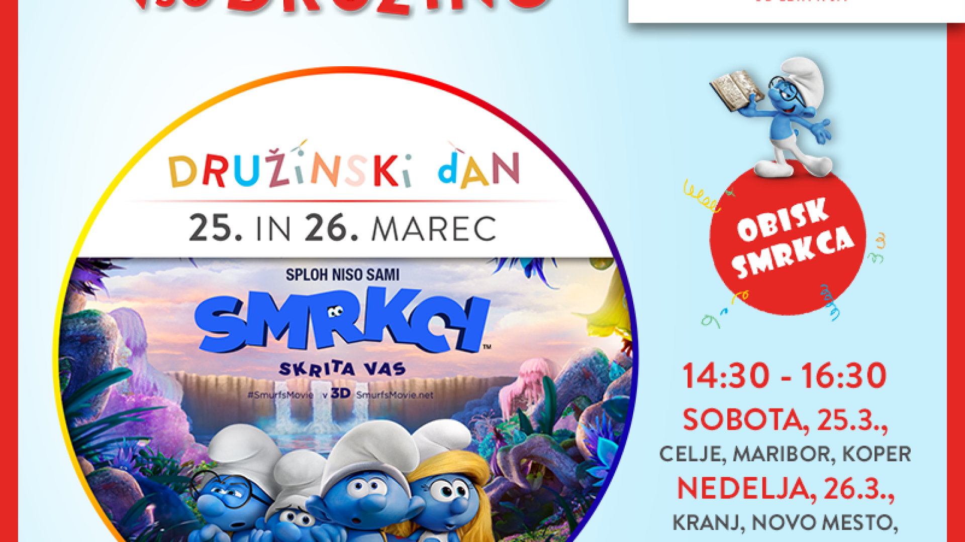 Cineplexx MariborV soboto, 25. in nedeljo, 26. marca v Cineplexxu pripravljajo smrkastično obarvan Družinski vikend.