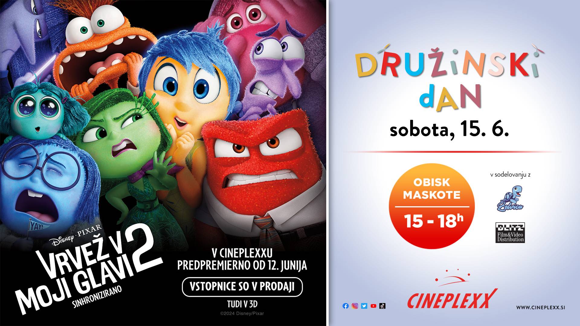 Cineplexx MariborPridružite se nam na DRUŽINSKEM DNEVU s filmom VRVEŽ V MOJI GLAVI 2, v soboto, 15. junija 2024, v Cineplexxu Maribor!