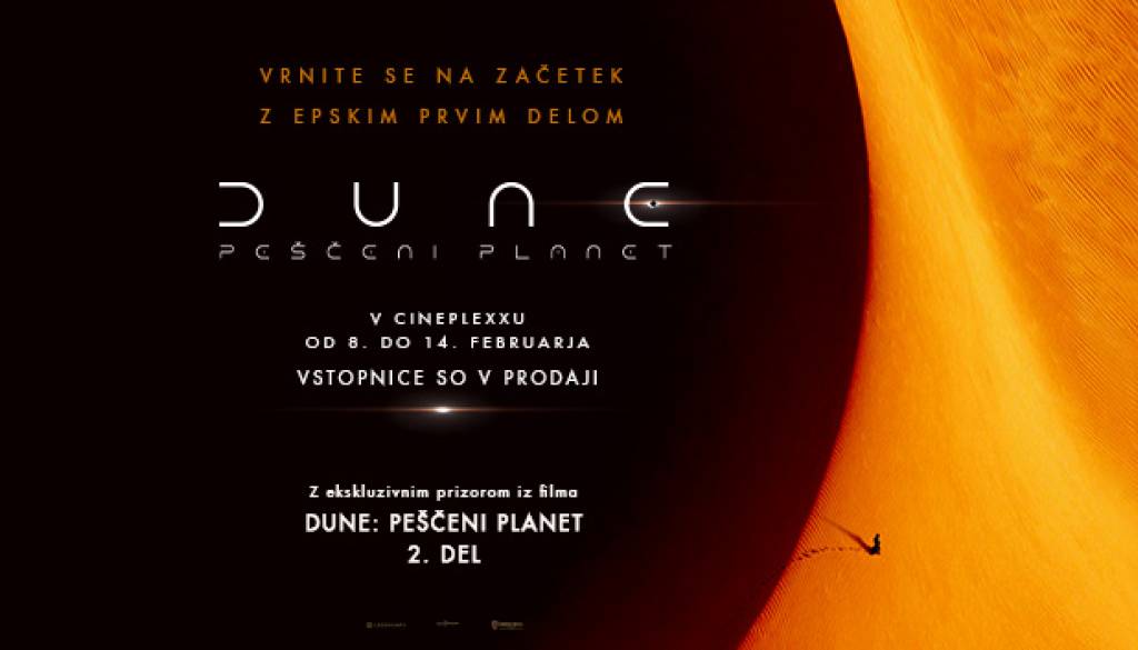 Cineplexx MariborNa velika platna se 8. februarja vrača adaptacija znanstvenofantastične klasike Franka Herberta, Dune: Peščeni planet iz leta 2021. Film bo na rednem sporedu od 8. do 14. februarja.