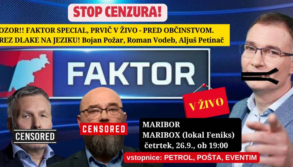 Ne boste verjeli, vendar: priljubljena televizijska oddaja Faktor, bo z voditeljem Aljušem Pertinačom in njegovimi gostoma: Bojan Požar in mag. Roman Vodeb potekala v živo, v četrtek 26. septembra, ob 19h v Mariboru, lokal Feniks v Mariboxu.