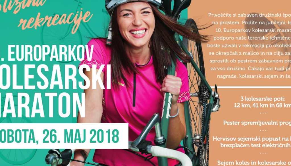 Preživite aktiven in rekreativen dan v družbi svoje družine in prijateljev na kolesu. Letos organiziramo že 10. Europarkov kolesarski maraton. Verjetno že veste, da je glavni namen rekreativnega maratona druženje ter povečevanje ozaveščenosti označenih kolesarskih poti v Mariboru in njegovi okolici.