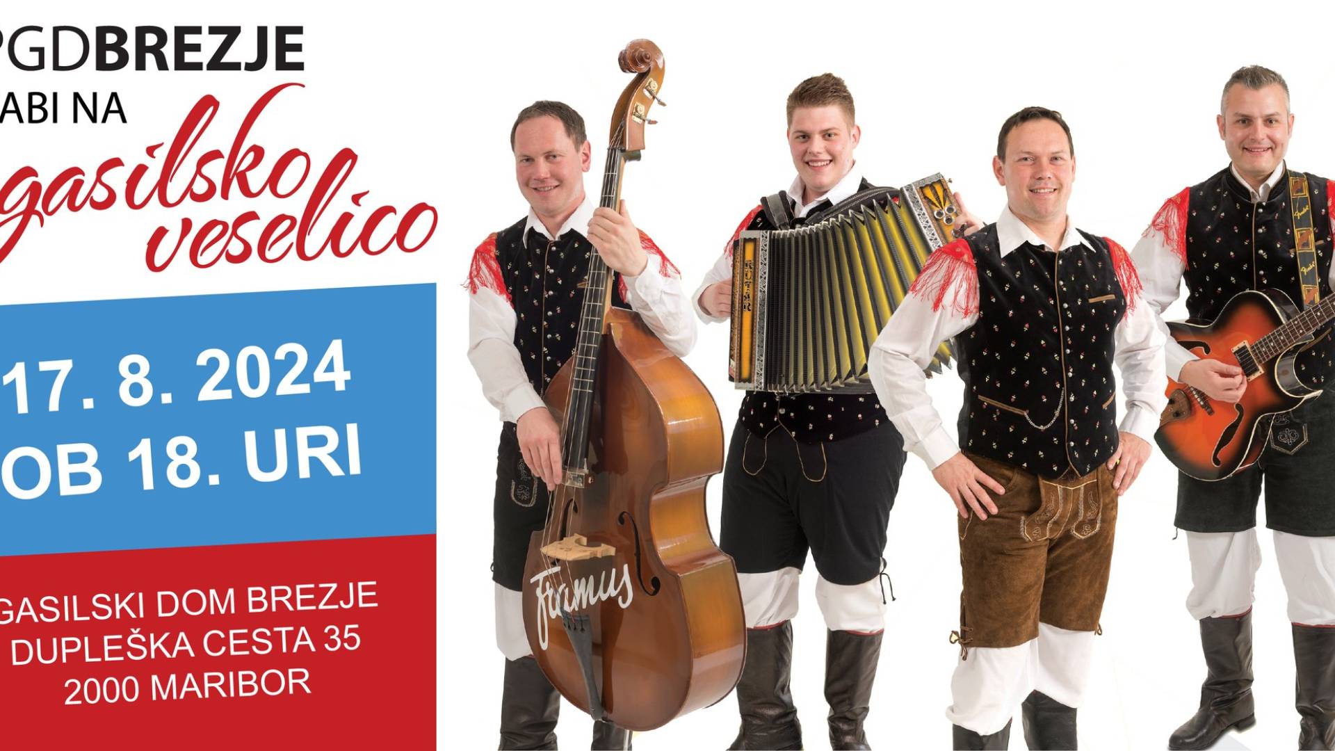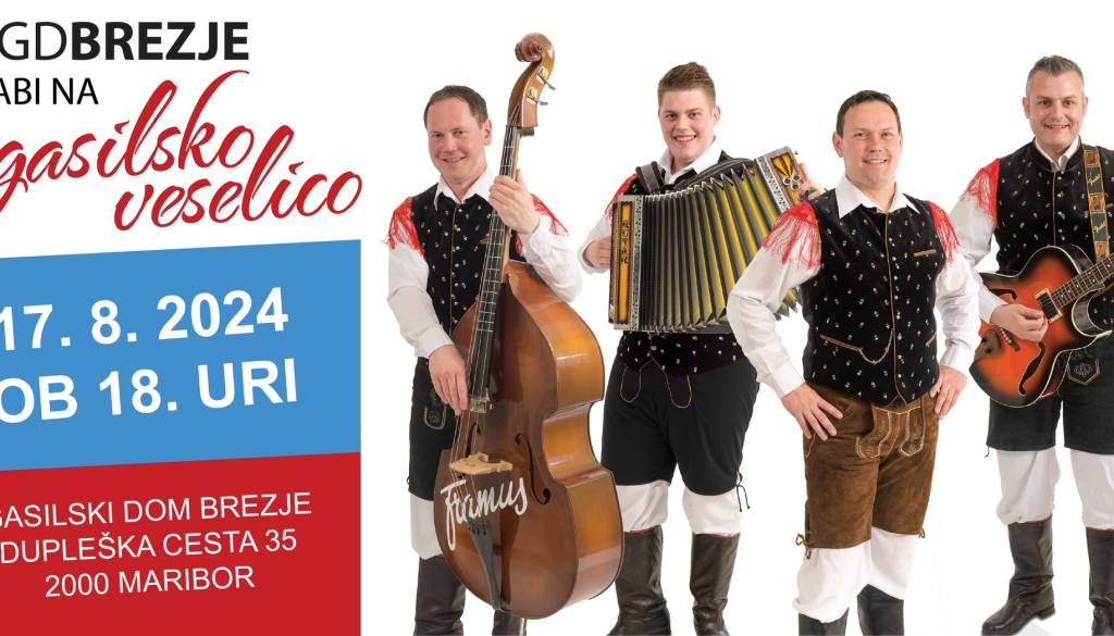 Vabimo vas na gasilsko veselico, ki bo potekala v soboto, 17. avgusta, ob 18. uri pri gasilskem domu v Brezju na Dupleški cesti 35 v Mariboru.