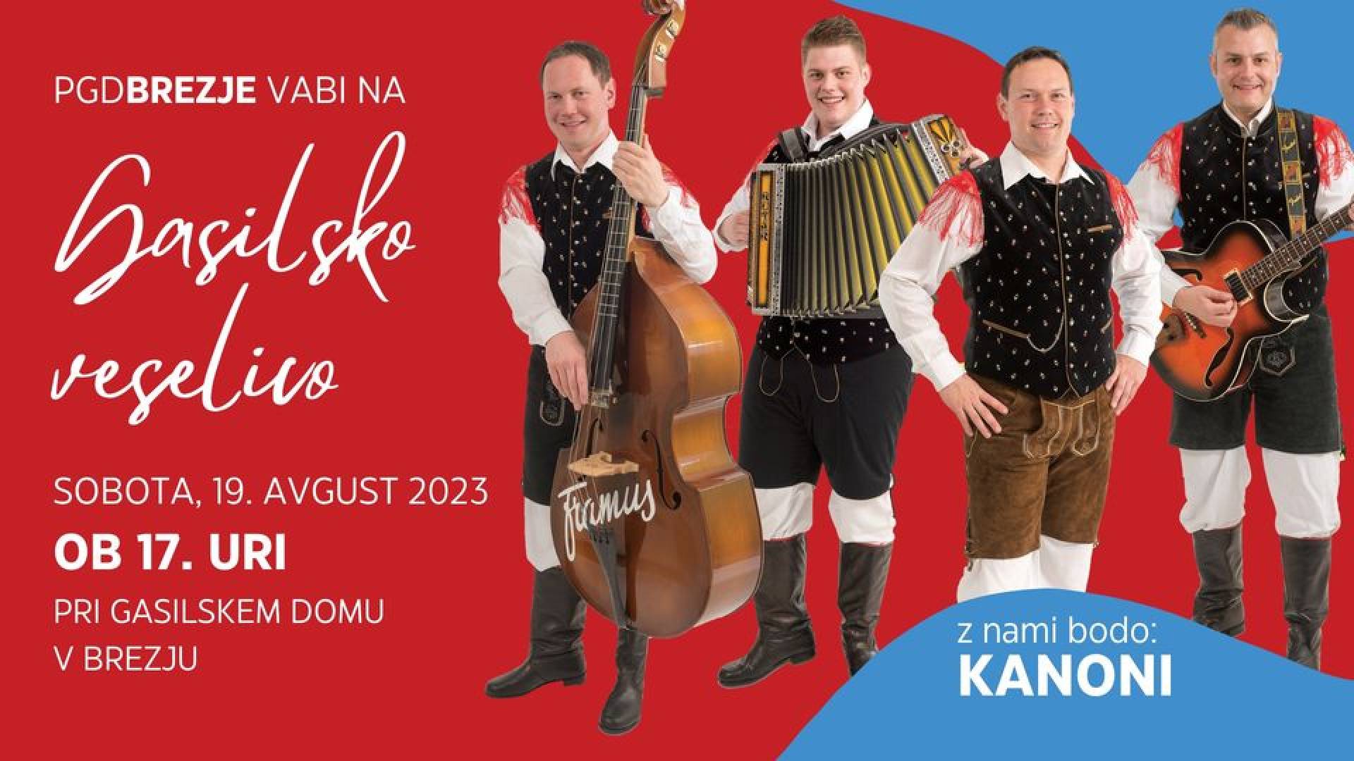 Vabimo vas, da se nam pridružite na gasilski veselici v Brezju, ki bo potekala v gasilskem domu dne 19. avgusta 2023, s pričetkom ob 17. uri. Za vaše dobro počutje bo poskrbljeno, saj bomo v živo gostili glasbeno skupino Kanoni, ki vam bo zagotovo pričarala dobro vzdušje in vas spravila v gibanje na plesišču! Poskrbljeno bo tudi za hrano in pijačo.