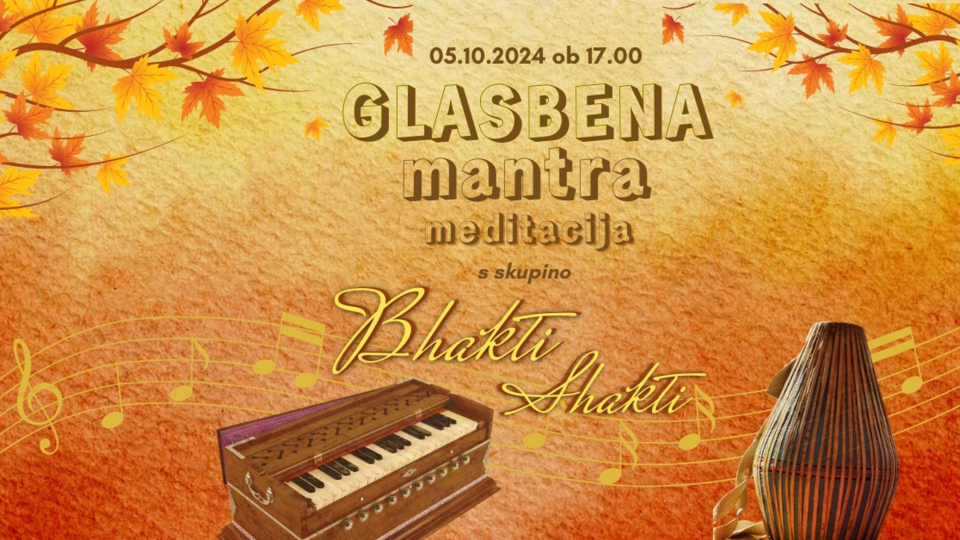 Po poletnem premoru se skupina Bhakti Shakti vrača z rednimi dogodki v sklopu glasbenih večerov in vabimo vas, da se nam pridružite že to soboto 05.10.2024 ob 17. uri.