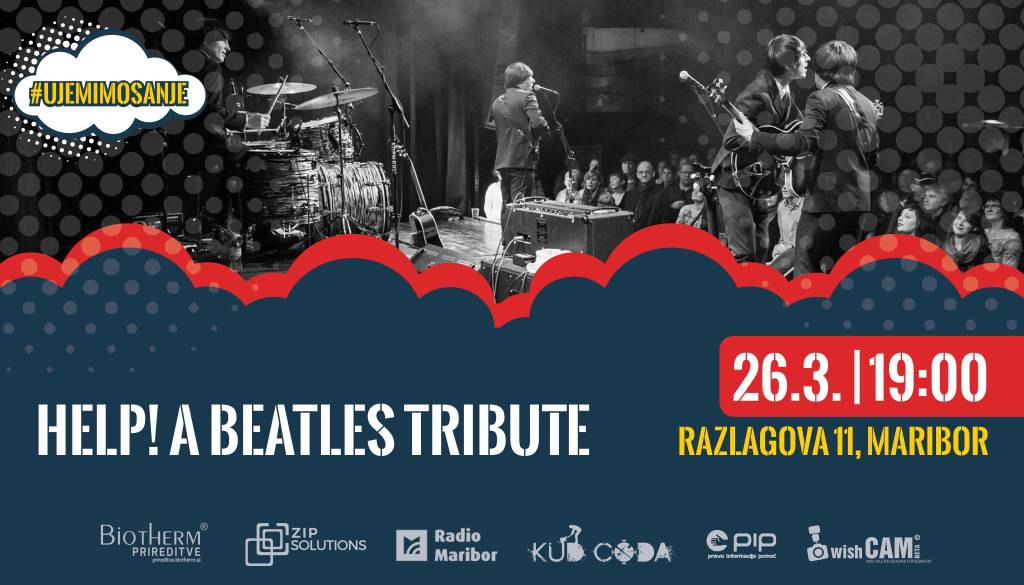 Razlagova 11, MariborKoncert v podporo KUD Coda za projekt Glasbeni junaki, s katerim bodo mladi glasbeni talenti dobili nove prostore za ustvarjanje. Koncerti se bodo odvijali v 'dnevni sobi' za omejeno število obiskovalcev (do 40). Hvala Help! A Beatles Tribute za pomoč pri uresničevanju naših sanj! #ujemimosanje