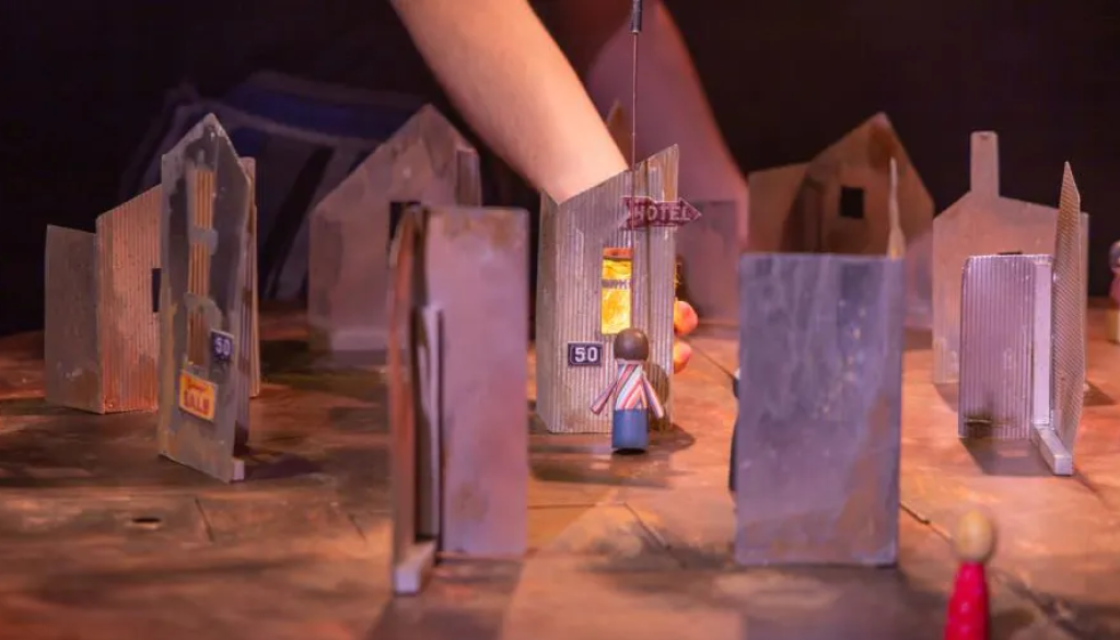 Zgodbo Trije, ki si želijo h kralju Magnusa Millsa je ustvarjalna ekipa vzela za izhodiščno točko, s katere se z glavnim junakom Gregorjem odpravimo na lutkovni vestern, popotovanje po puščavi in odkrivanju tega, kaj si zares želimo. Raziskovalec Gregor na svojem potovanju naleti na zapuščeno pločevinasto hišo. Hiša ni nič posebnega, je le kos pločevine, a se vanjo vseeno vseli. Zaradi okolice in spleta dogodkov se začne spraševati, kako je lahko zadovoljen s takšnim načinom življenja. V novo zgrajenem mestu je vendarle lepše. Bo Gregor premagal svoje strahove in znal prisluhniti sam sebi?