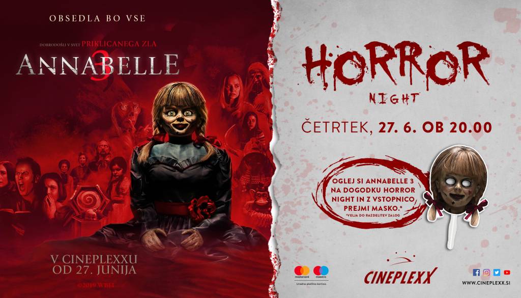 Cineplexx MariborSi upaš v temno dvorano na Horror night z grozljivko Annabelle 3? V četrtek, 27. junija ob 20.00 v Cineplexxu Maribor.