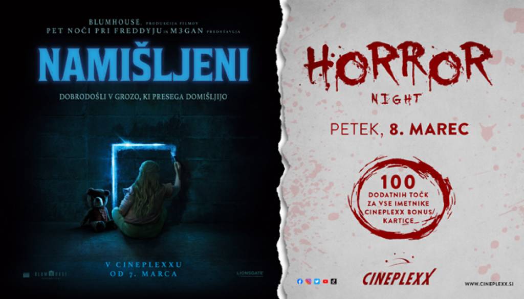 Cineplexx MariborPridruži se nam na Horror nightu s filmom NAMIŠLJENI, ki bo v petek, 8. marca! Imetnike naše CBC kartice bomo nagradili s 100 dodatnimi točkami*!