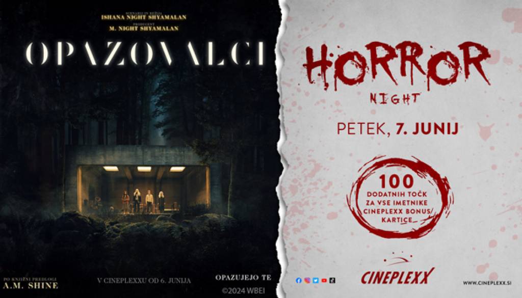 Cineplexx MariborPridruži se nam na Horror nightu s filmom OPAZOVALCI, ki bo v petek, 7. junija 2024! Imetnike naše CBC kartice bomo nagradili s 100 dodatnimi točkami!