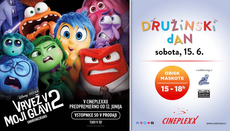 Pridružite se nam na DRUŽINSKEM DNEVU s filmom VRVEŽ V MOJI GLAVI 2, v soboto, 15. junija 2024, v Cineplexxu Maribor! Veselje, Žalost, Jeza, Strah in Gnus, ki ...