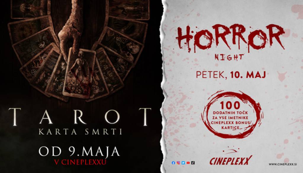 Cineplexx MariborPridruži se nam na Horror nightu s filmom TAROT: KARTA SMRTI, ki bo v petek, 10. maja 2024! Imetnike naše CBC kartice bomo nagradili s 100 dodatnimi točkami!