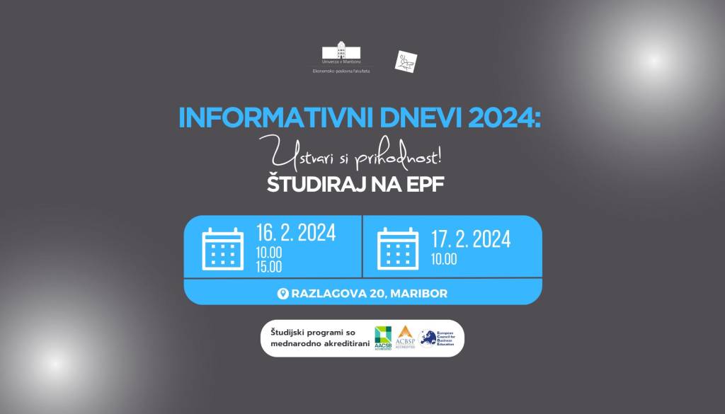 INFORMATIVNI DNEVI 2024: Ustvari si prihodnost! Študiraj na EPF