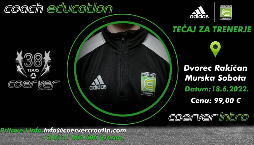 Dvorec Rakičan Lendavska ulica 28 RakičanCilj tečaja Coerver® Intro je zagotoviti trenerjem teoretični in praktični pregled razvoja metode Coerver od njene ustanovitve leta 1984.