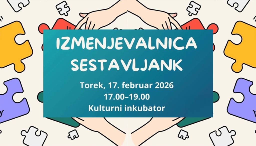 Imaš doma sestavljanko, ki si jo že stokrat dokončal_a? Ali pa takšno, ki že mesece stoji na polici in čaka na boljše čase? Super! Prinesi jo s seboj na Izmenjevalnico sestavljank v Kulturni inkubator in jo zamenjaj za novo! Sestavljanje, izmenjava in druženje bo v torek, 17. februarja 2026, ob 17. uri.