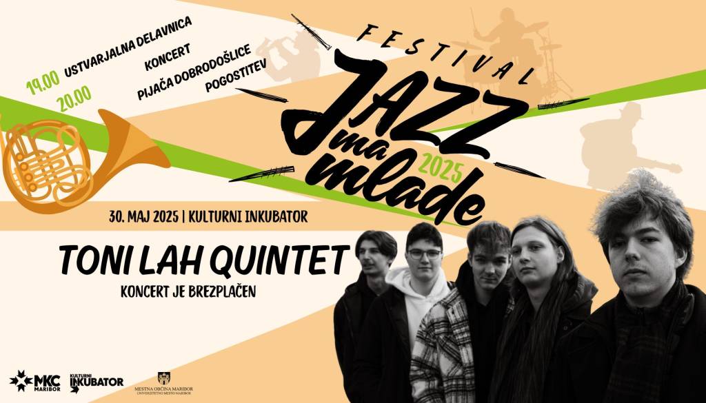 Kulturni inkubator, Koroška ulica 18, MariborV petek, 30. maja 2025 se v Kulturni inkubator vrača festival Jazz ‘ma mlade 2025, ki ga organizira Mladinski kulturni center Maribor. Na drugem koncertnem večeru v letu 2025 bo nastopila mlada zasedba Toni Lah Quintet.