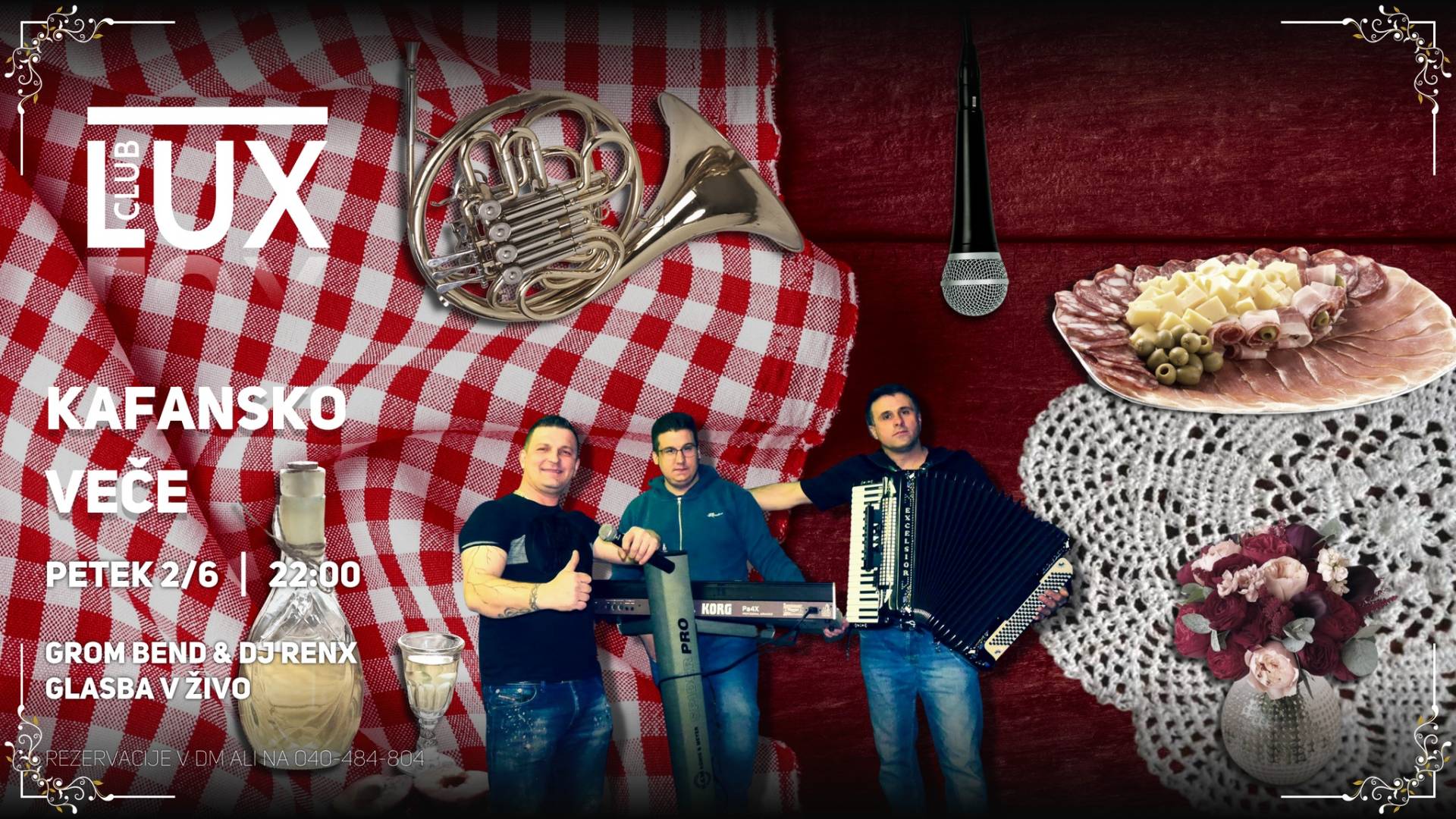 Club LUX MariborJUŽNE RITME bo igrala lokalna zasedba GROM BEND