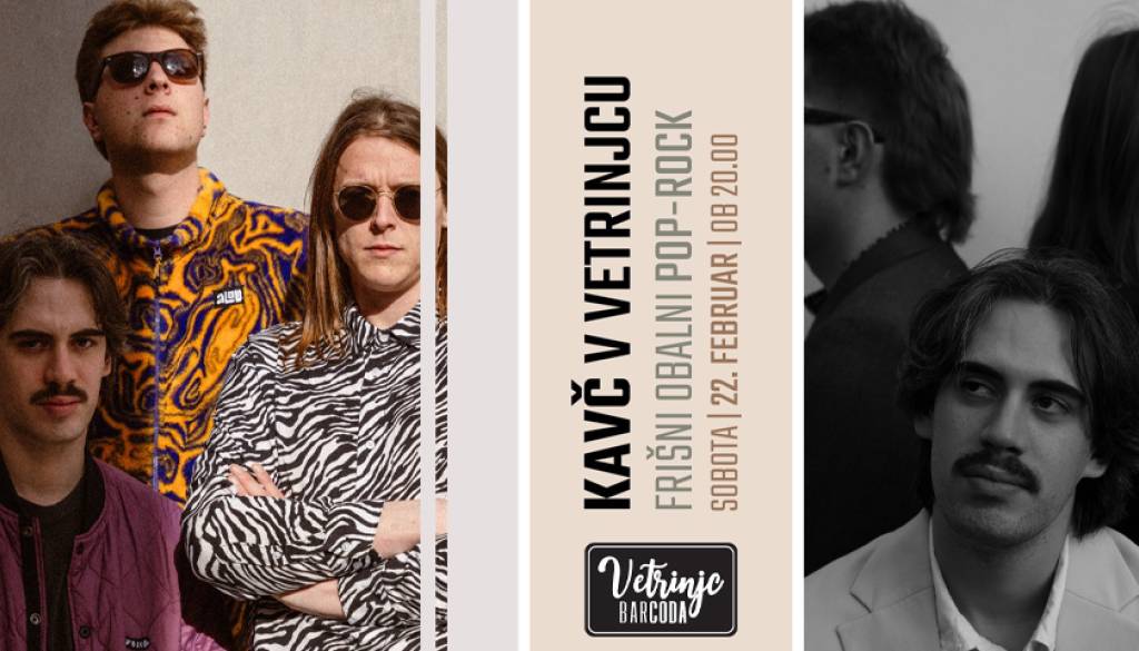Vetrinjc - BarCodaPredprodaja na šanku in v spletni Coda štacuni: 5 €, na dan koncerta: 8 €