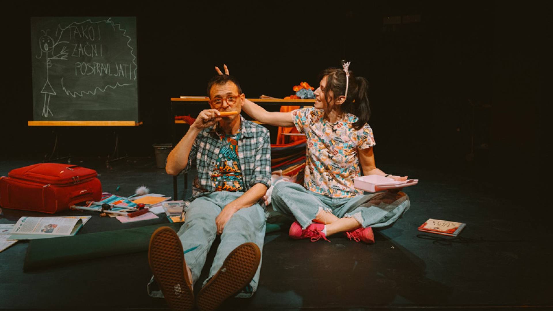 Nova otroška uprizoritev je nastala po knjižni predlogi priznane slovenske pisateljice Cvetke Sokolov Kot noč in dan. V njej nastopata Barbara in Dominik, najboljša prijatelja, stara devet let, ki sta si različna kot noč in dan. Zabavne situacije, njuna nasprotovanja, prepirljivi dialogi, monološki razmisleki, nepričakovani zasuki in pronicljive domislice so sooblikovali podobo dekliško-fantovskega sveta, ki pa je vse prej kot črno-bel. V eni šolski uri igralca učencem približata ne le duhovite situacije, ki nastajajo med najboljšima prijateljema, pač pa skozi režijsko postavitev Mateje Kokol z uporabo raznovrstnih gledaliških praks učiteljem pokažeta, kako prirediti knjižno besedilo za potrebe uprizoritve, kako učilnico uporabiti kot »oder« ali kako samo z uporabo rekvizitov ustvarjati vsakič nove dogajalne prostore in s preprostimi sredstvi v razredu pričarati čisto pravo gledališko uprizoritev.