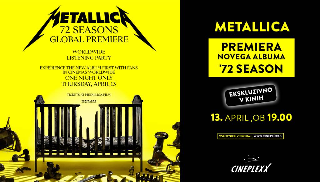 Cineplexx MariborSvetovna glasbena zabava! Metallica: 72 Seasons – Global Premiere, ekskluzivno v kinih, en dan pred izidom, predstavlja najnovejši album!